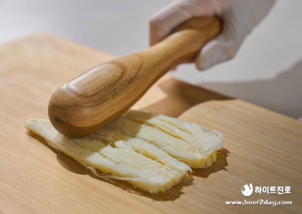 굵은 더덕은 칼집을 조금씩 내어 펼쳐가며 두들겨 주세요.