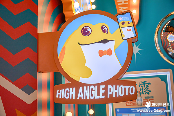 요즘 핫한 트렌드죠? 하이앵글 포토부스가 가장 먼저 눈에 띕니다✨ 천장에 달린 카메라를 바라보며 포-즈! 진로골드의 사랑스러운 로즈 골드 컬러 부스 안에서 껍딱지들의 장꾸력을 마음껏 뽐내고 가세요😋🤟