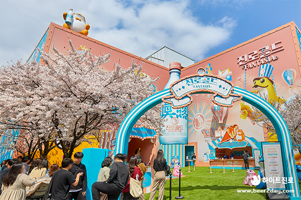 지난주 벚꽃이 만개하기 시작했던 날! 진로골드 팝업 스토어도 터지는 꽃봉오리같이 힘차게 문을 열었는데요🌸 오픈 전부터 입구 앞에 길게 늘어섰던 웨이팅 행렬에 비투지기도 깜짝!👀 수많은 껍딱지 여러분의 기대와 설렘을 느낄 수 있었답니다✨