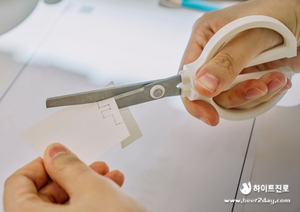 3. 밑그림과 전사지 색깔 선택까지 완료되었다면 밑그림 모양에 맞춰 전사지를 잘라줍니다.