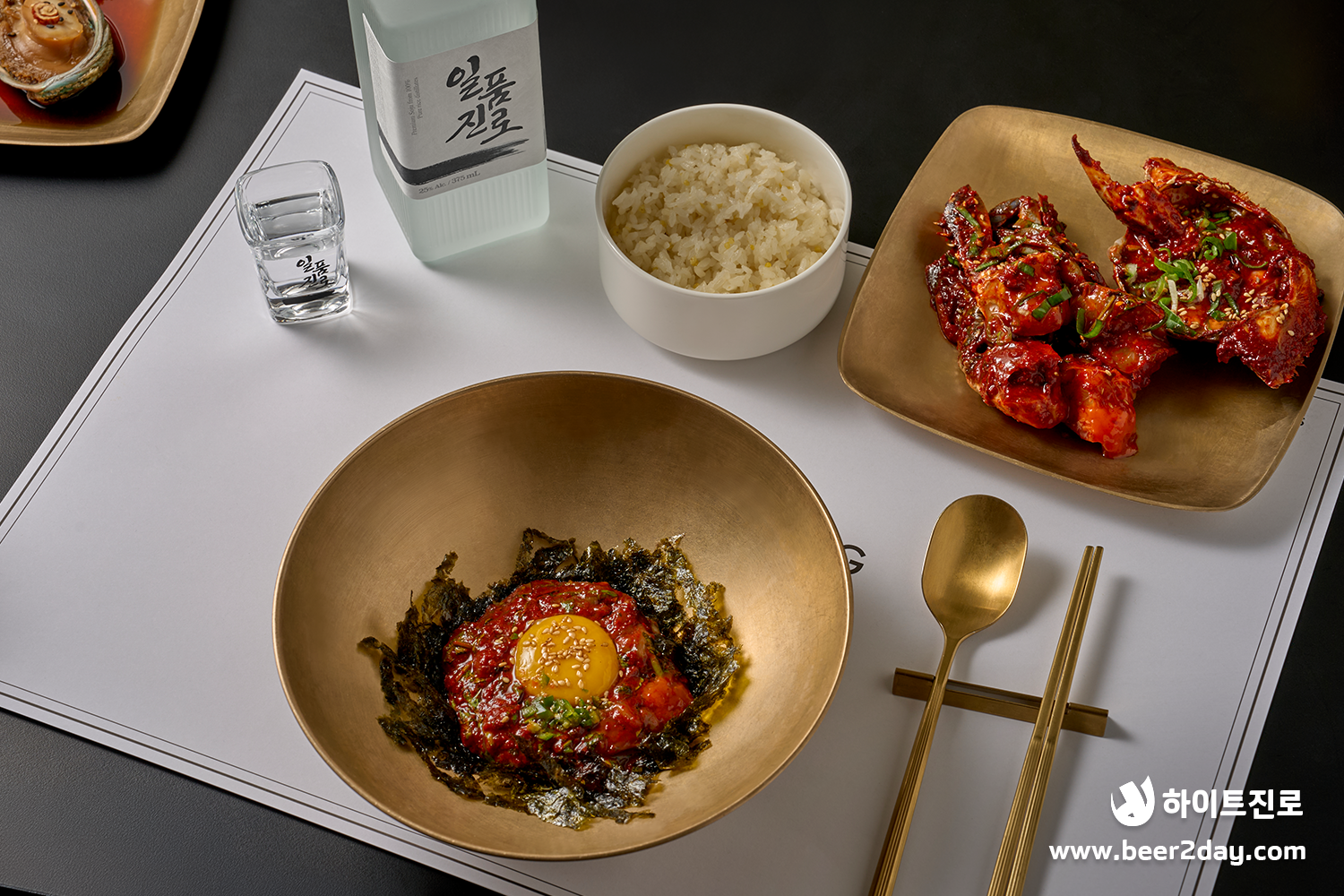 게장밥을 한입 크게 먹고~ 일품진로 온더락 한 모금을 마시면, 달콤씁쓸한 어른의 맛이 휘몰아치는 경험을 할 수 있을 거예요.
