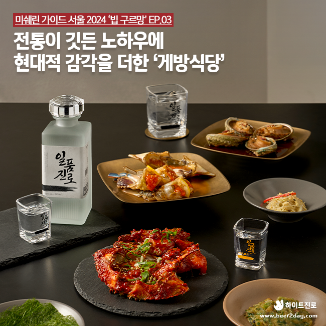100년 증류주의 정수 일품진로가 미쉐린 가이드 서울의 증류식 소주 공식 파트너로 선정된 이후, 합리적인 가격대의 훌륭한 음식을 선보이는 빕 구르망 레스토랑을 선별해 소개하고 있는데요!