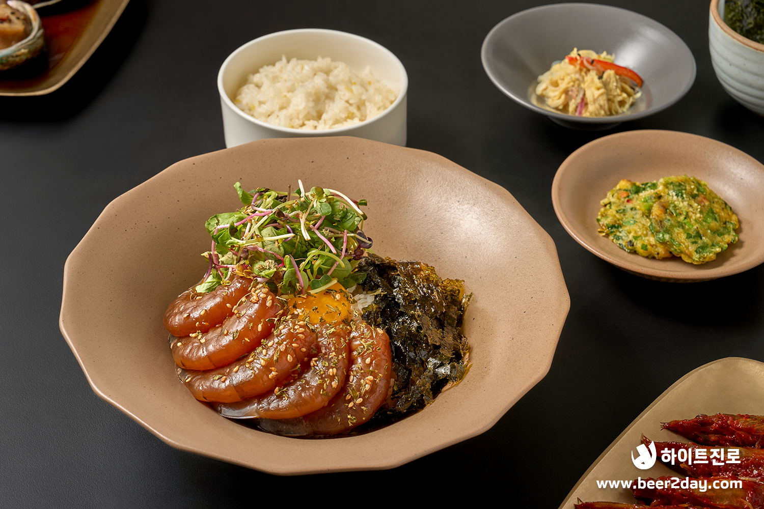 간장 새우와 새싹야채의 밸런스가 훌륭한 새우장 비빔밥도 필수랍니다!