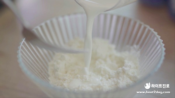 6. 핫케이크 가루에 우유나 물을 섞어서 반죽을 만들어줍니다.