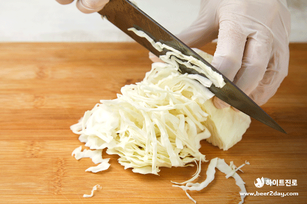 1. 양배추, 양파, 당근, 오이, 깻잎을 먹기 좋게 채 썰어주세요.