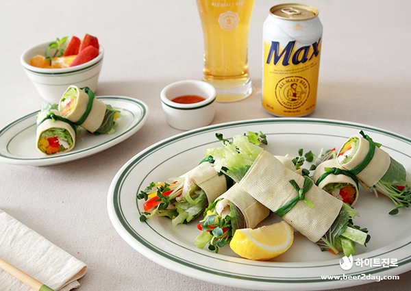 고소한 포두부와 형형색색의 재료가 잘 어우러진 쌈두부 월남쌈에 부드러운 맥스의 만남이 더해져 한층 더 풍미 있고 건강한 안주 한 상을 만들어줍니다.