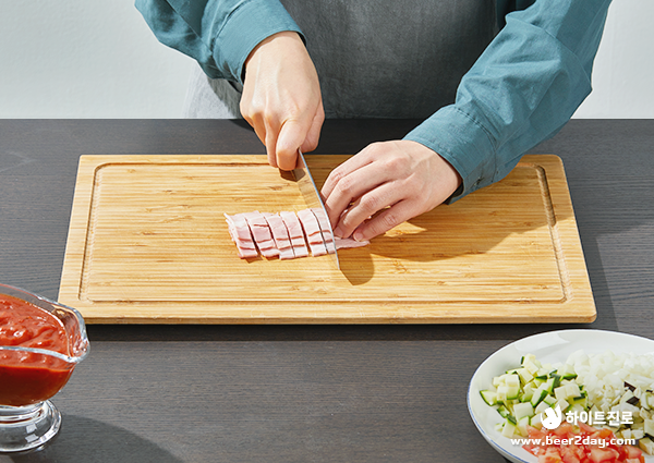 토마토소스 200ml, 양파 3T, 쥬키니 호박 2T, 토마토 3T, 가지 3T, 올리브오일 1T, 후추, 소금