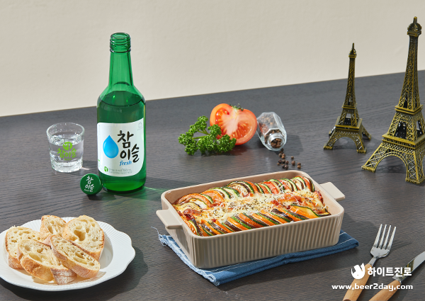 깨끗한 맛의 대명사, 한국 대표 소주 참이슬과 프랑스 가정식 라타투이의 만남! 형형색색 화려한 비주얼과 뭉근히 끓여 깊어진 채소 스튜 라타투이는 일교차로 추워진 초봄 날씨에 몸을 따뜻하게 해주는 안주로도 손색이 없습니다. 오늘은 몸과 마음이 따뜻해지는 라타투이로 하루를 마무리해 보는 것은 어떨까요?