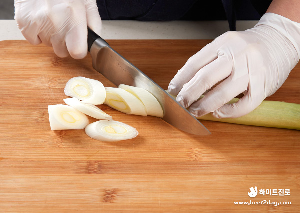 2. 굵직한 대파도 어슷썰기로 썰어주세요.