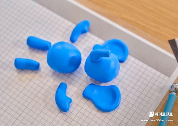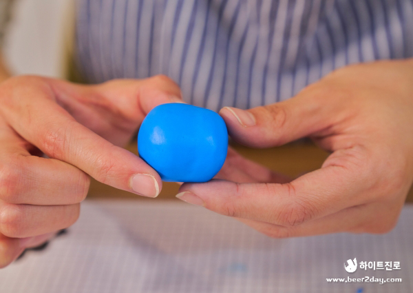 2. 파란색 클레이를 둥글게 굴려서 귀여운 필리의 머리와 몸통이 될 부분을 만들어주세요.