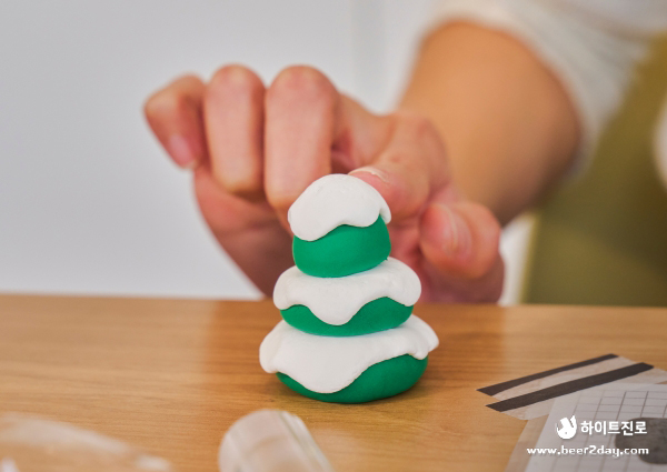 8. 필리가 완성되면 크리스마스 분위기를 내줄 트리를 제작해 줍니다. 초록색으로는 나무 부분을, 흰색으로는 눈을 표현해 주면 간단하게 만들 수 있는데요.