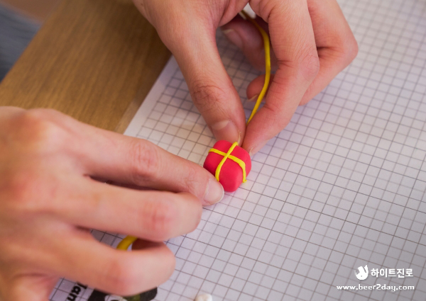 10. 직육면체로 만든 빨간 클레이에 길게 늘린 노란색 클레이로 리본을 표현하면 크리스마스에 어울리는 선물상자도 완성입니다.