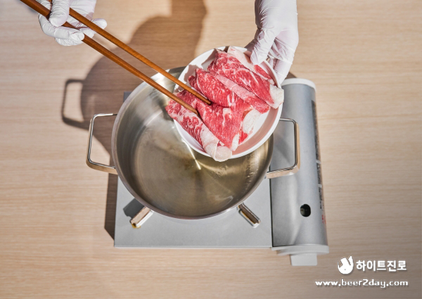 3. 달군 냄비에 차돌박이를 구워줍니다.