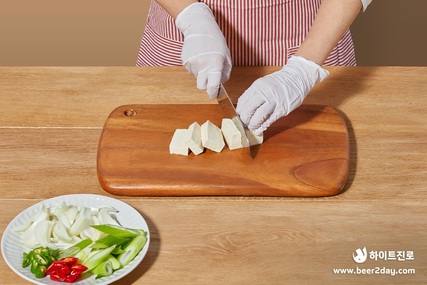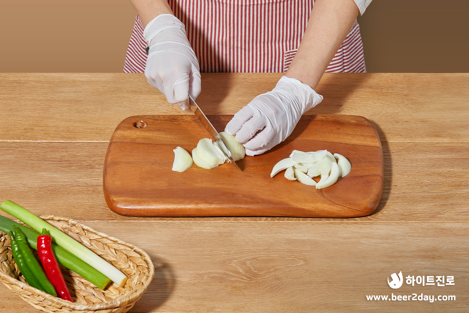 3.양파는 굵게 채를 썰고, 청양고추, 홍고추, 대파는 어슷하게 썰어 준비해 주세요.