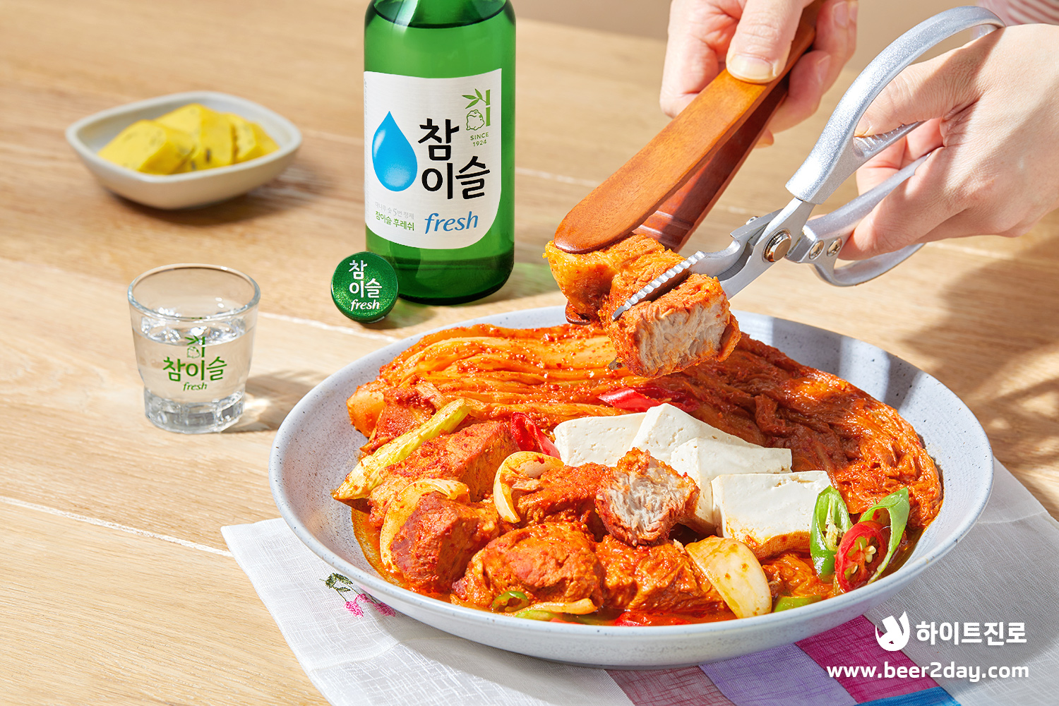대한민국 No.1 소주 참이슬과 담백 칼칼한 목살 김치찜의 만남! 고기에 김치를 돌돌 말아 밥과 한입 가득 먹은 후, 깨끗한 참이슬로 부드럽게 넘겨주면?🤤 맛이 없을 수가 없는 대한민국 대표 소주X대한민국 대표 밥도둑의 만남! 입속은 K-축제의 장이 열립니다🎊